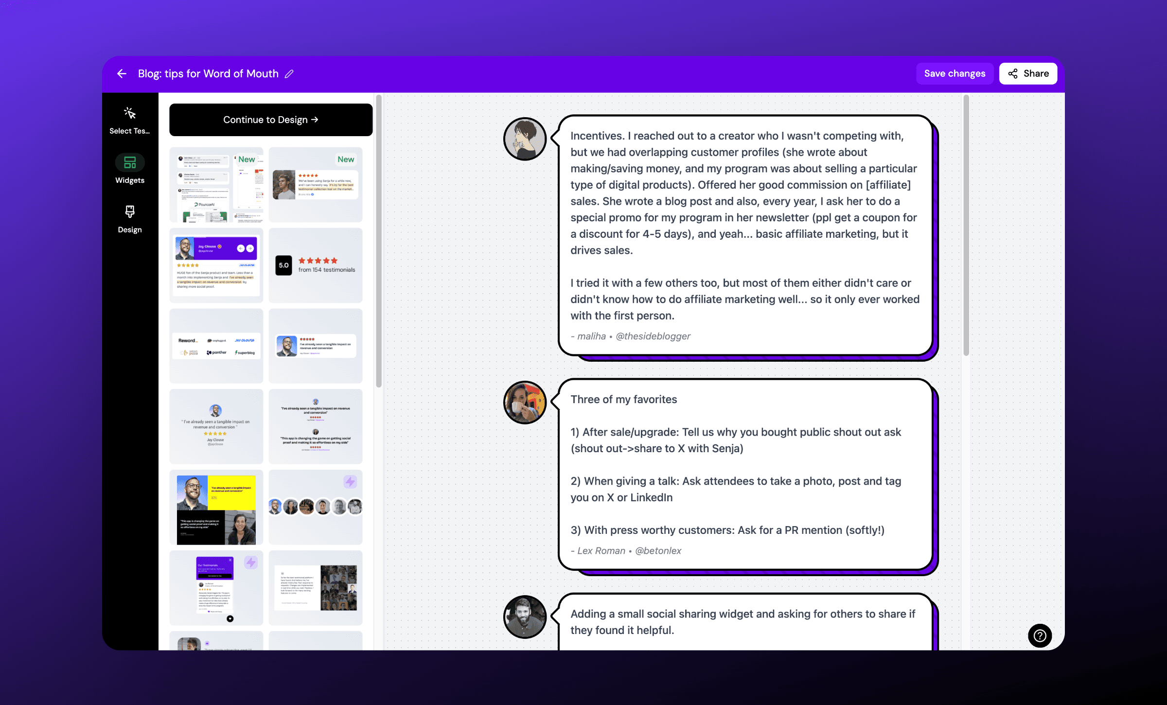 Top Takeaway: Put testimonials (and Senja!) to work spreading the word for you