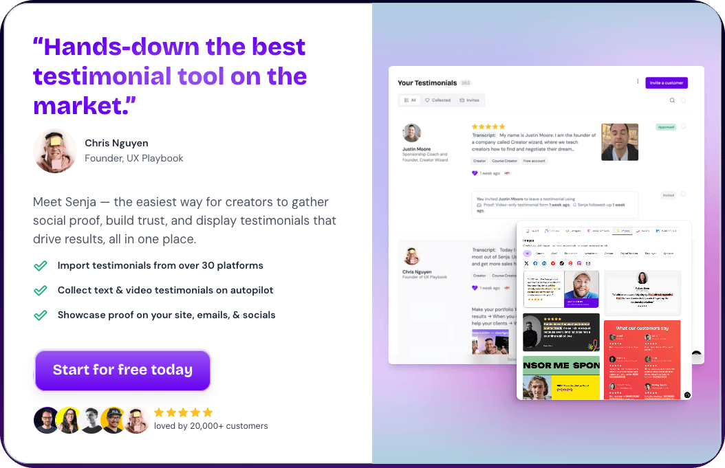💡 Senja users collect an average of 20 testimonials in just two days using these features.