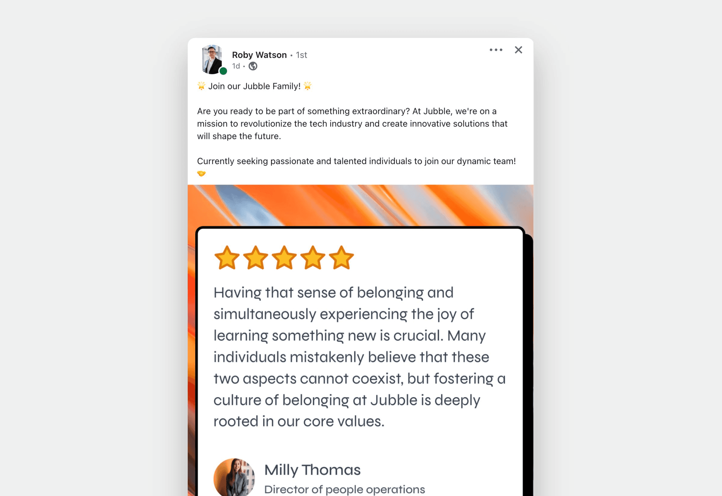 Posting new roles on social channels like LinkedIn? Include visual or video testimonials. Senja has a free Image Maker that can turn any testimonial into a beautiful image in seconds.