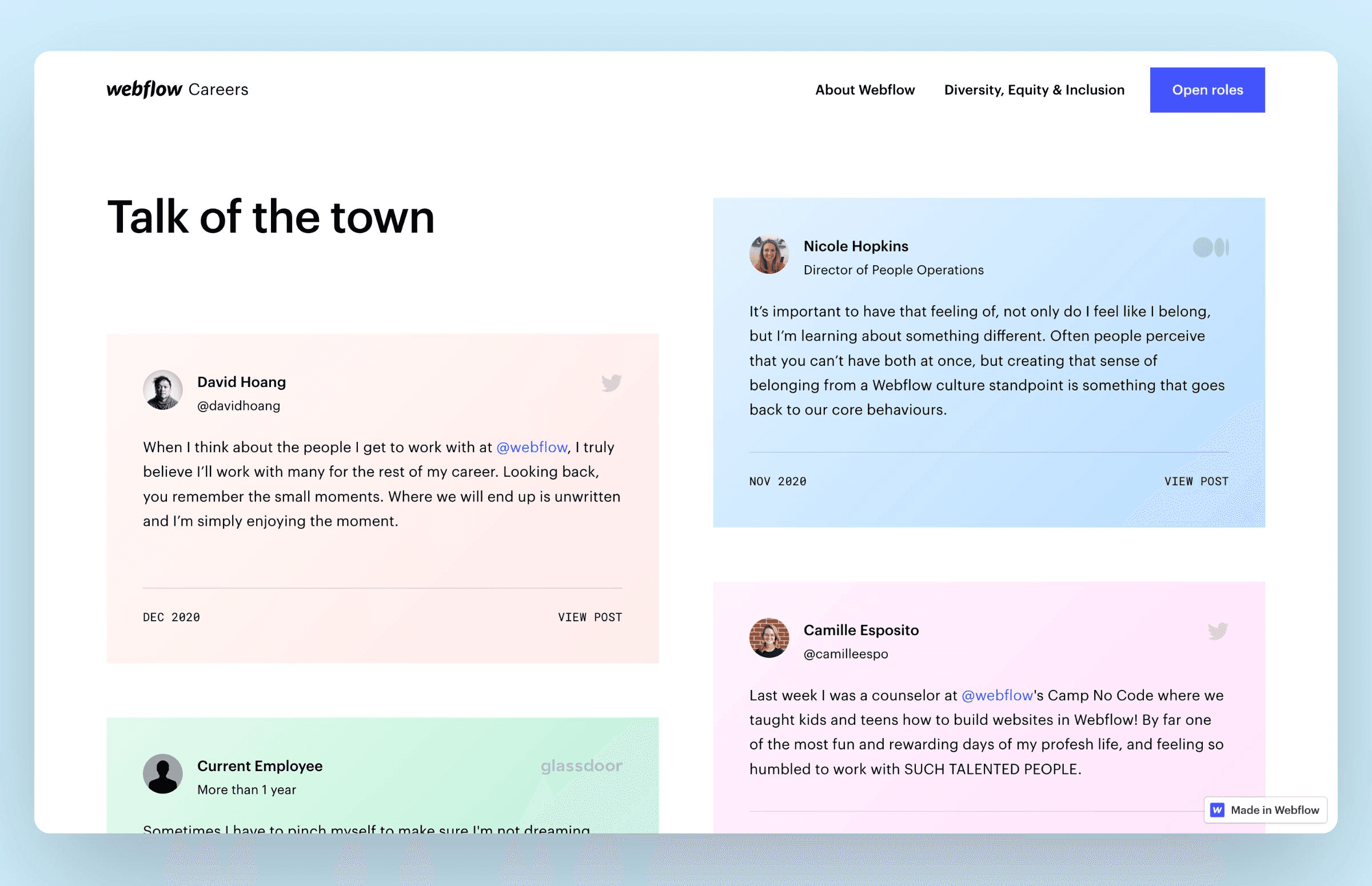 Testimonials from Webflow employees