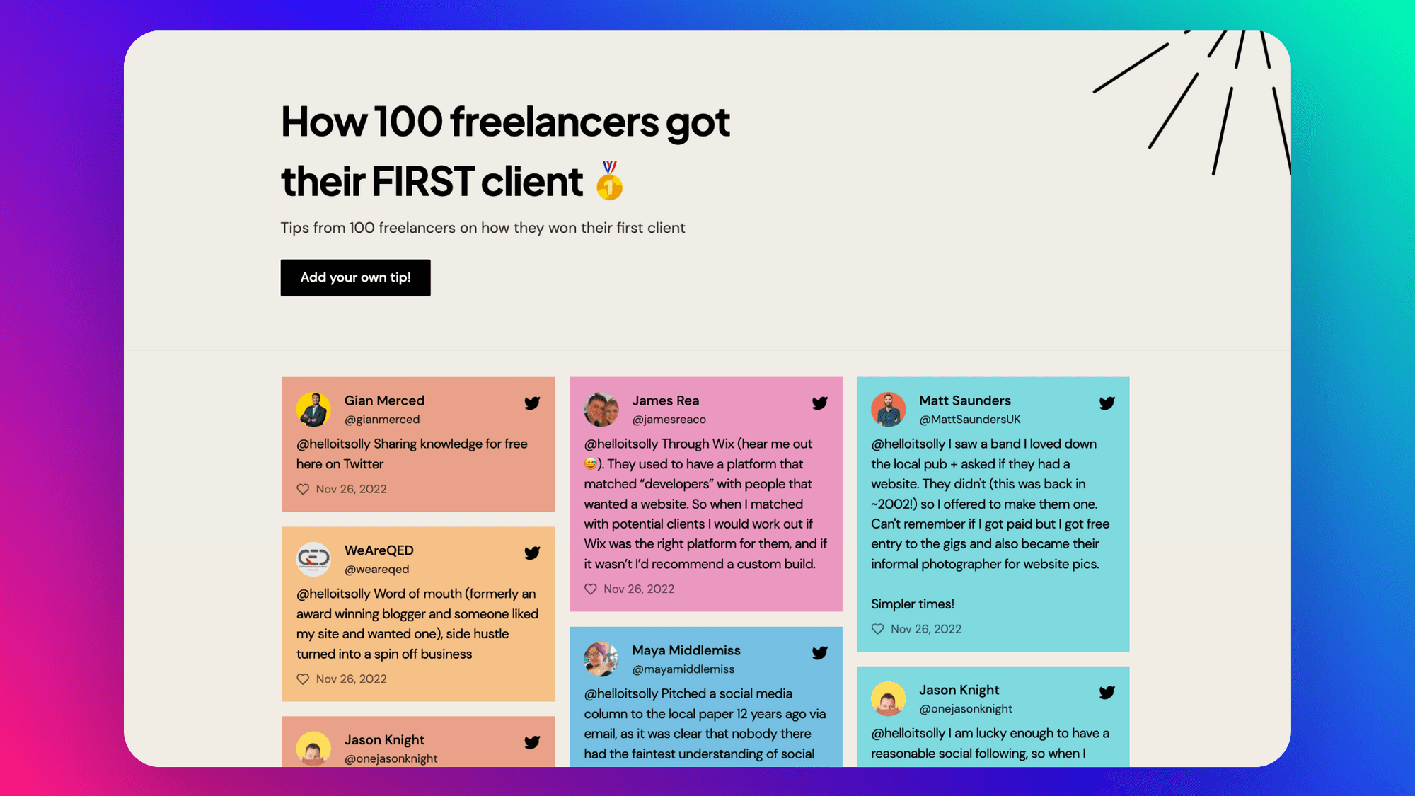 We asked 100 freelancers how they won their FIRST client