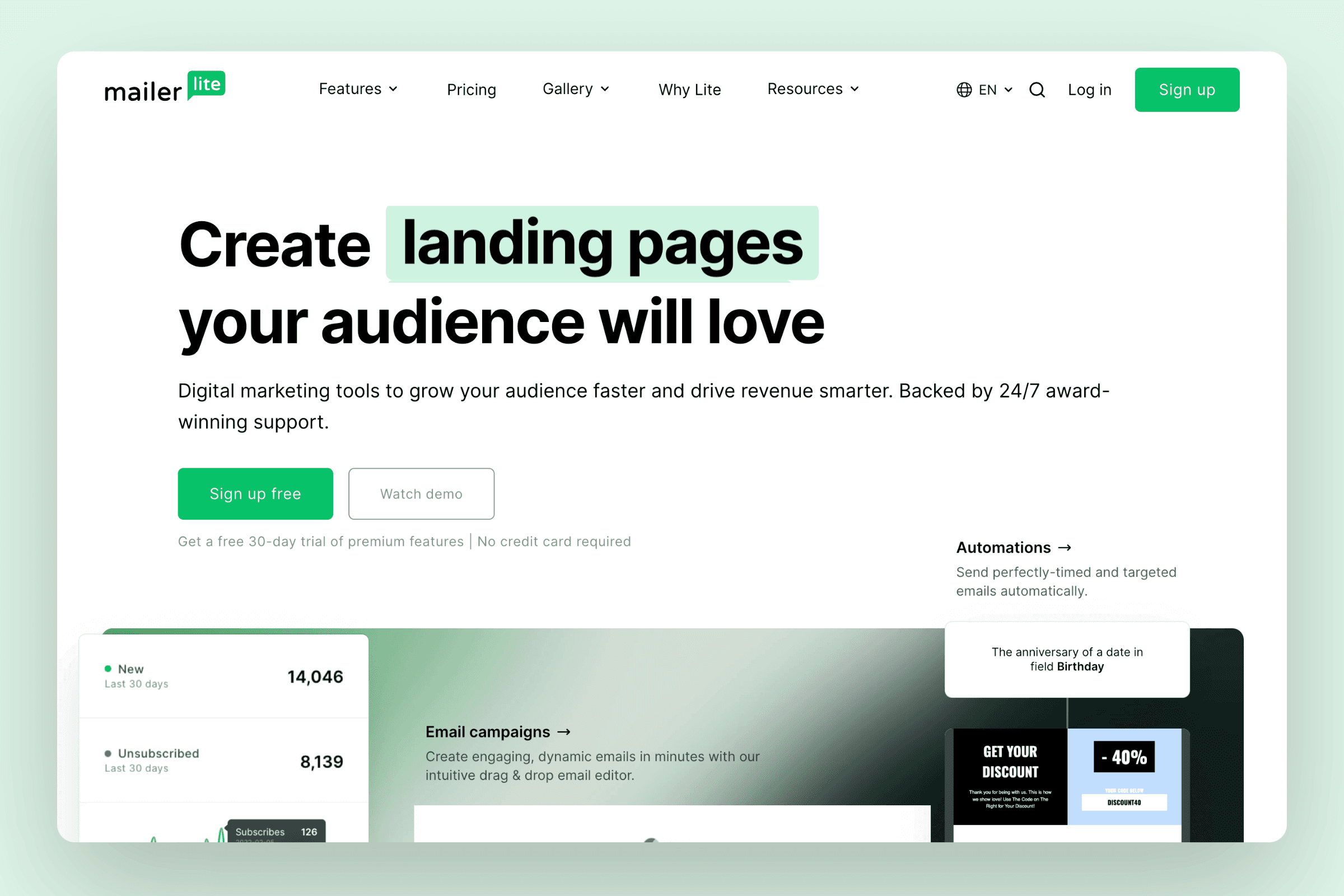 MailerLite is a budget-friendly alternative for email marketing. Simple but effective, it offers most of the essential features like automation, landing pages, and segmentation. A good pick if you're just starting out with your course and have a limited budget.