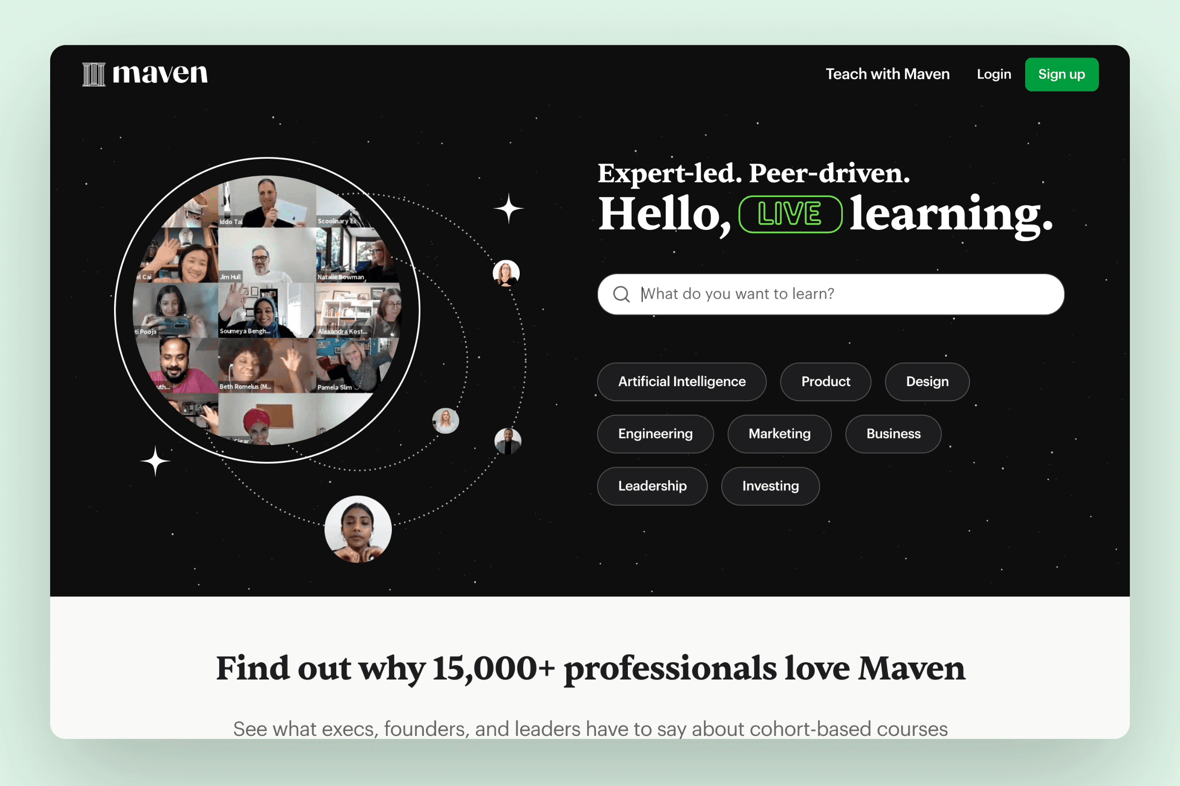 If you prefer live, dynamic teaching environments over pre-recorded videos, Maven is the tool for you.