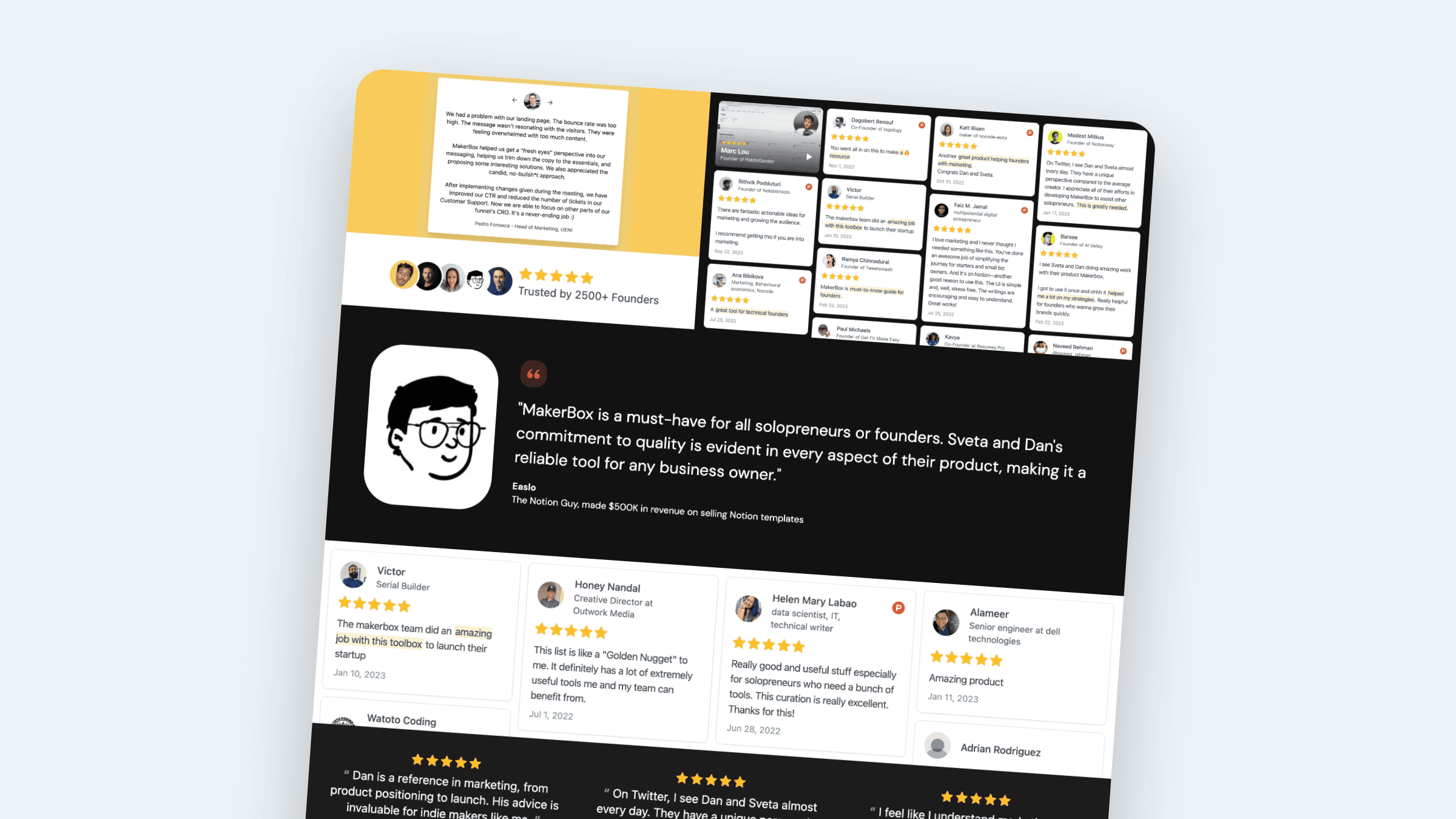 I found Senja through X around 6 months ago. We have more than 5products at MakerBox.club, so it was hard to collect all the testimonials manually. Senja helps with that.
