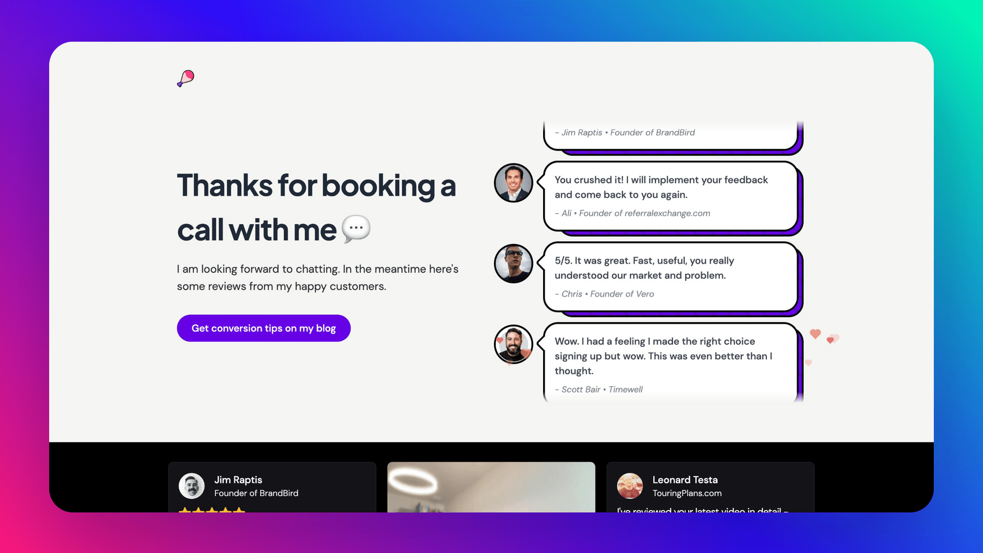 With Senja, you can even update the copy on the page to say thank you for booking a call, like this:
