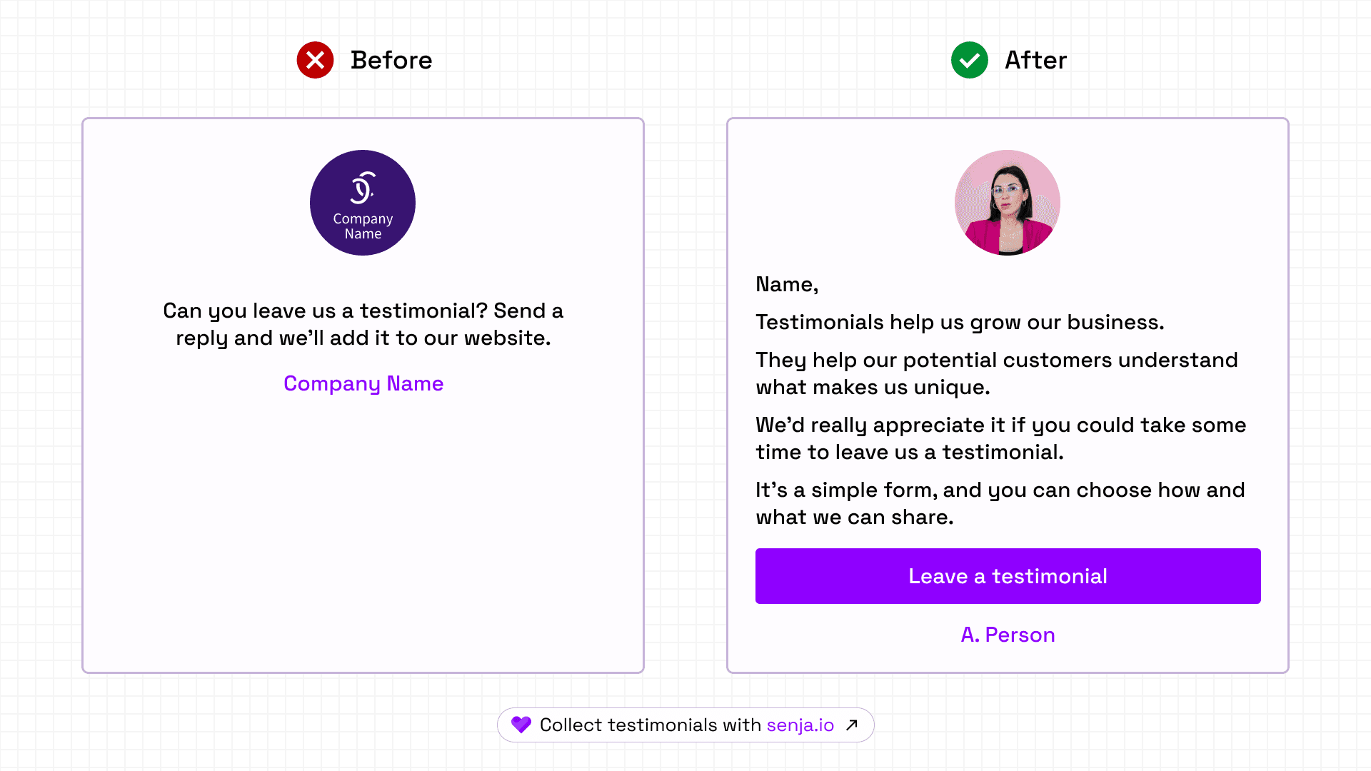 Jump in today and see how easy it is to collect testimonials with Senja.