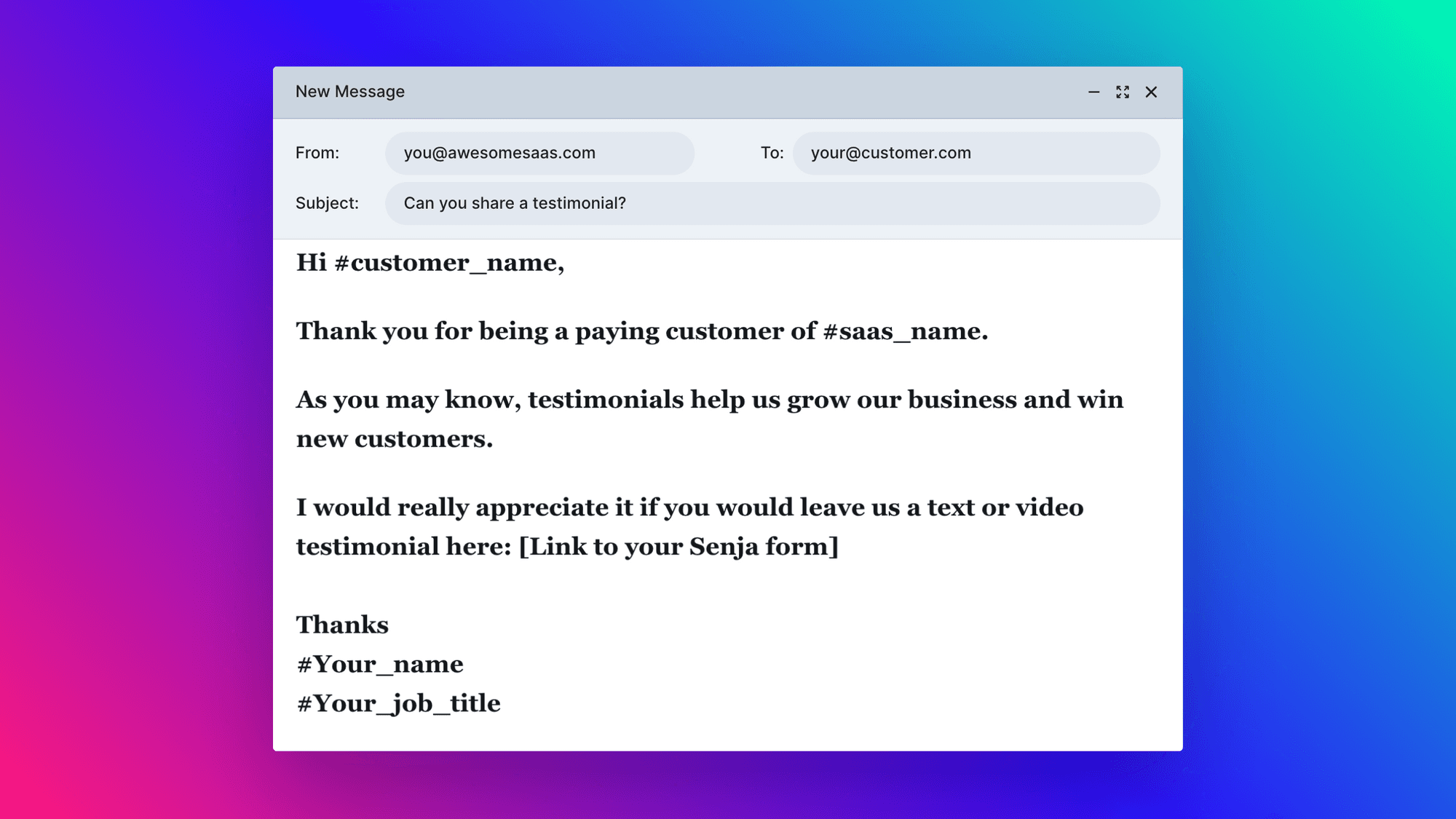 You can also use a testimonial tool like Senja to automate testimonial requests and follow ups.