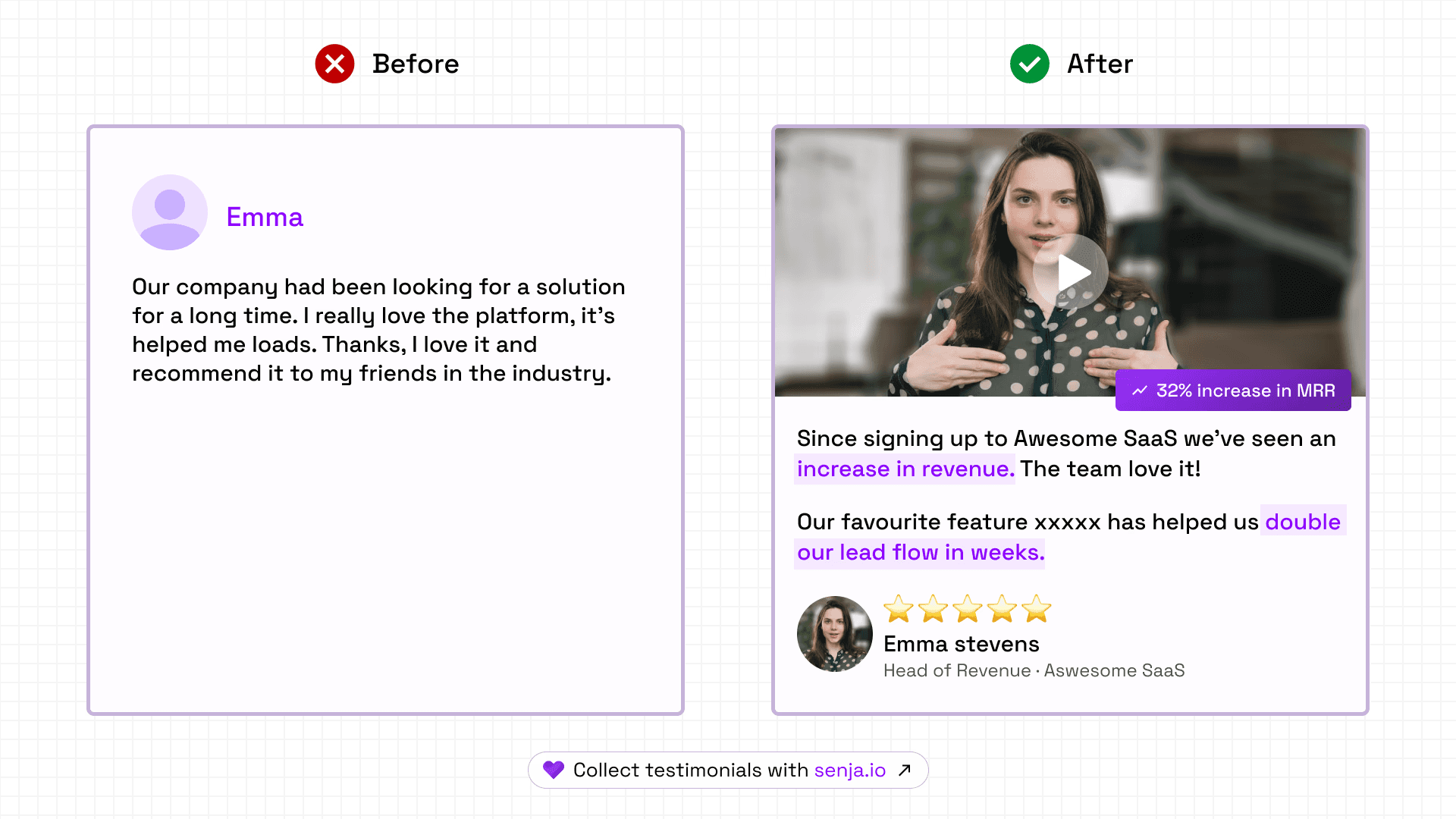 For B2B brands like those using Senja.io, these videos shorten sales cycles by humanizing your brand. They're versatile for websites, social media, and emails.