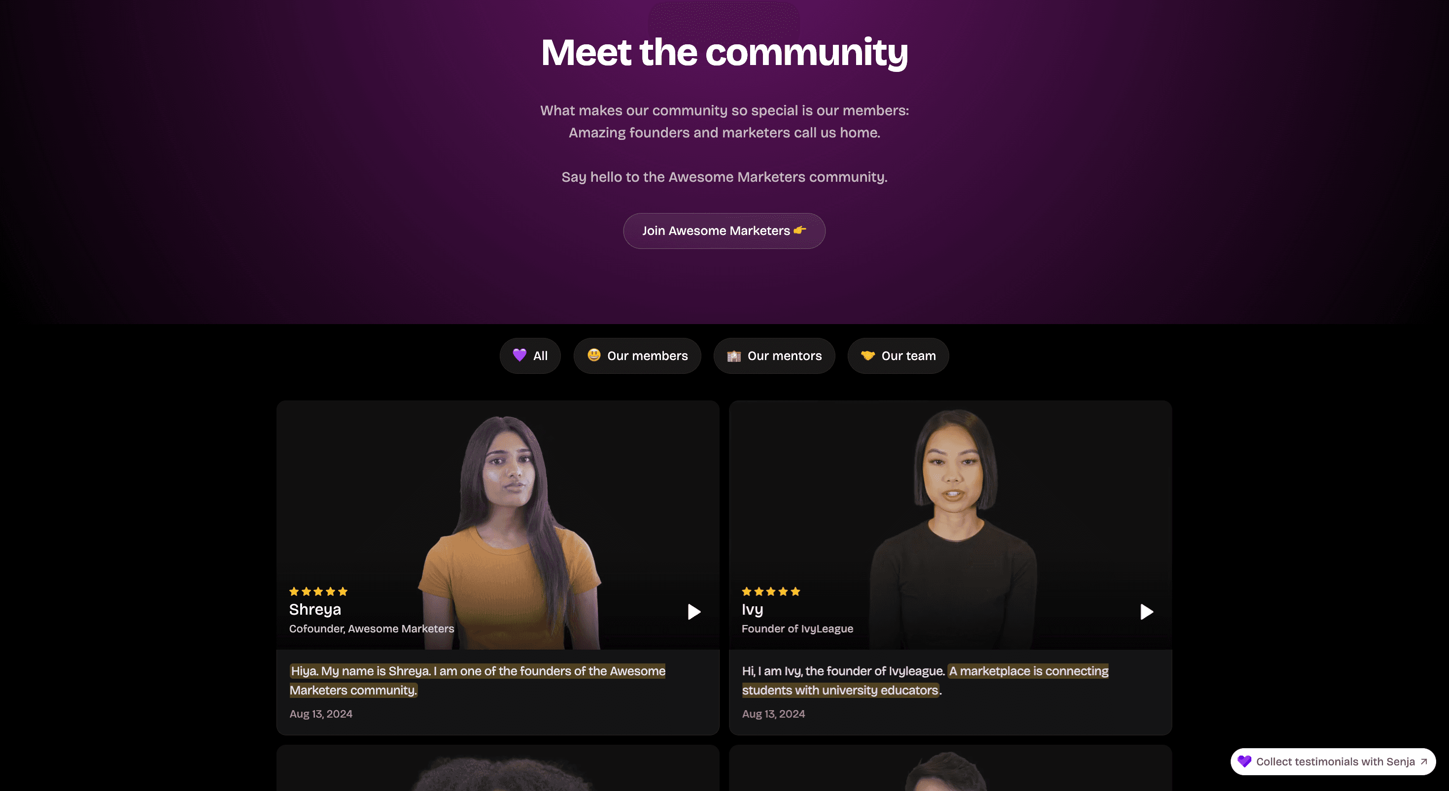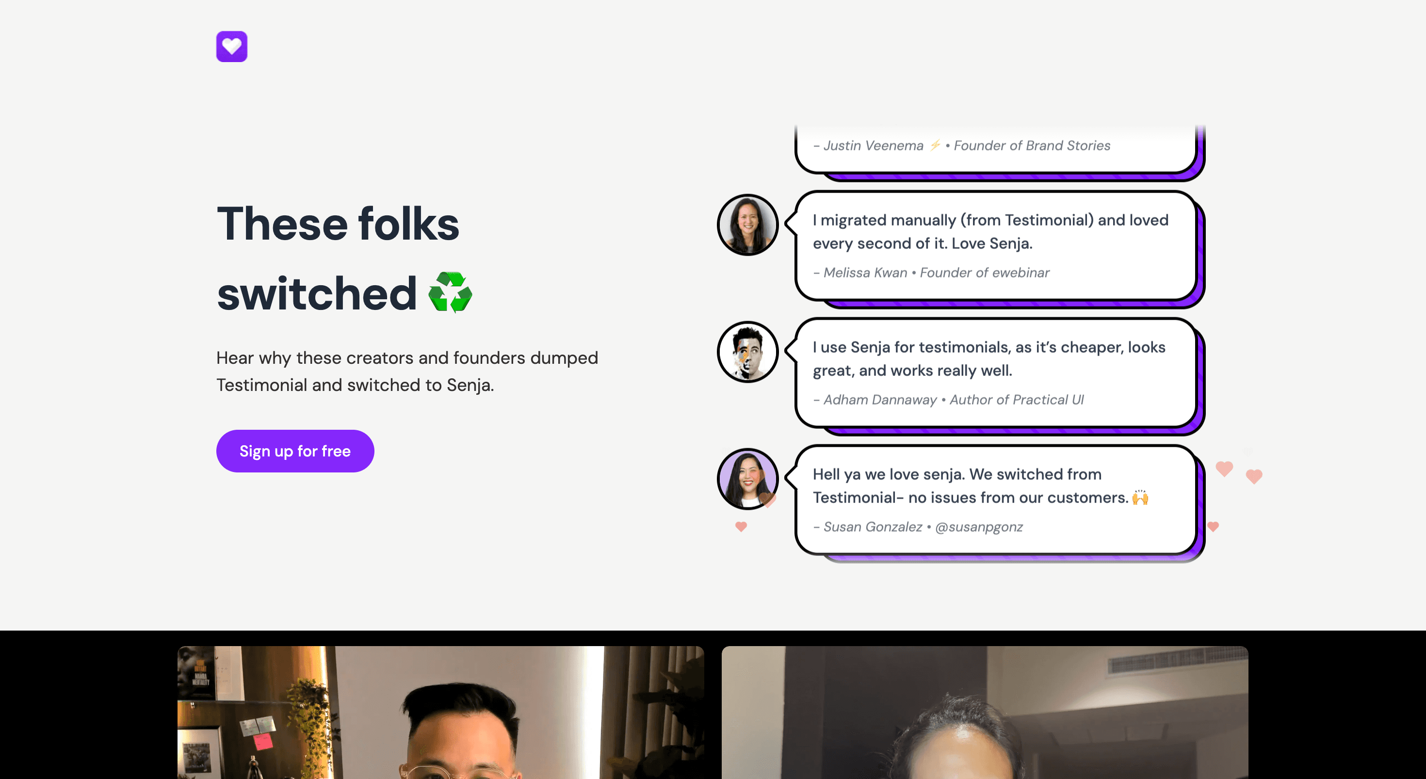 Sign up to Senja to create your free Wall of Love, we're the leading testimonial collection software.